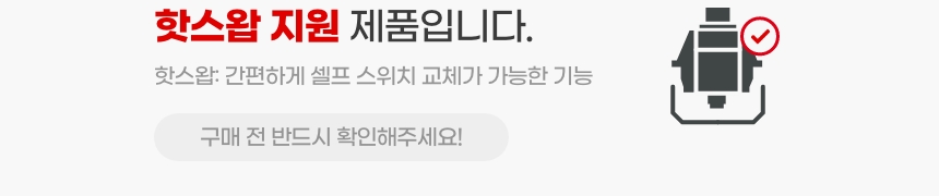 공기 저항을 최소화하는 소켓 돔 구조를 통해 타건 시 슬라이딩 특성을 개선하였습니다.